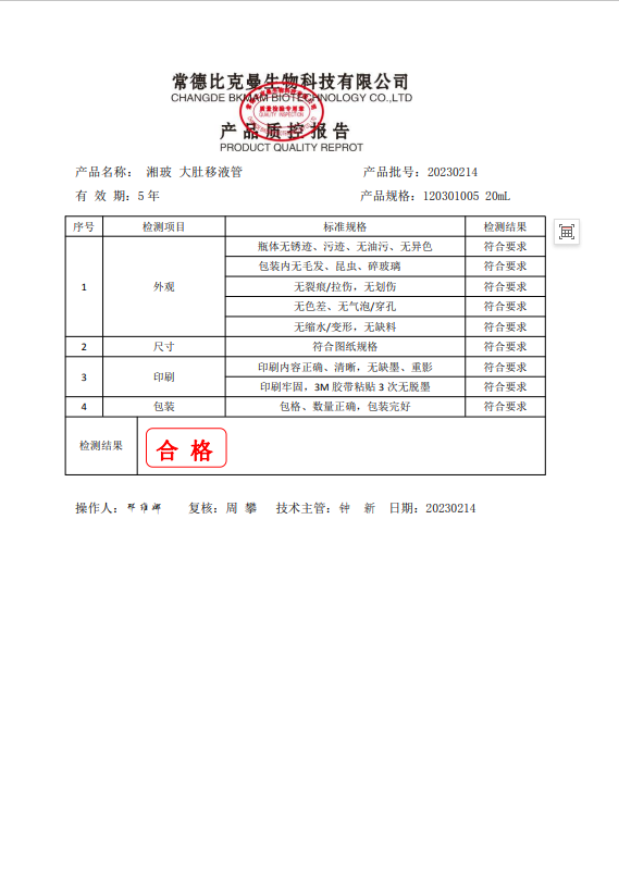 120301005 湘玻 大肚移液管 20ml(可過檢) 10支盒 20230214
