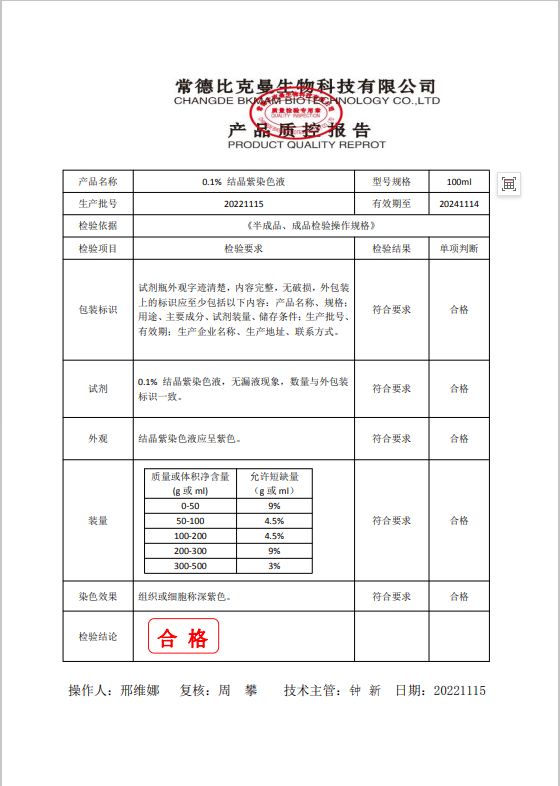 110703008 比克曼生物 結晶紫染色液 0.1% 100ml 20221115