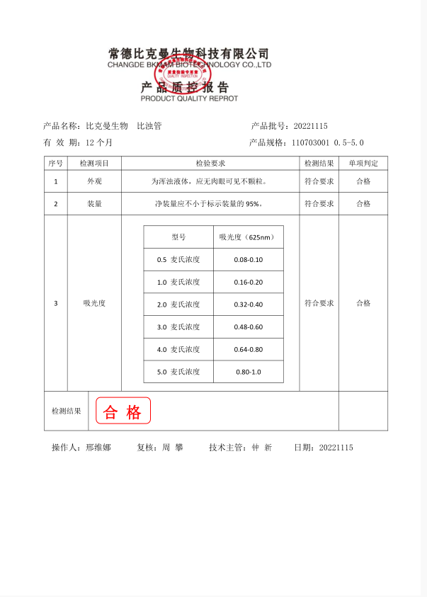 110703001 比克曼生物 比濁管 0.5-5.0 6支盒 20221115