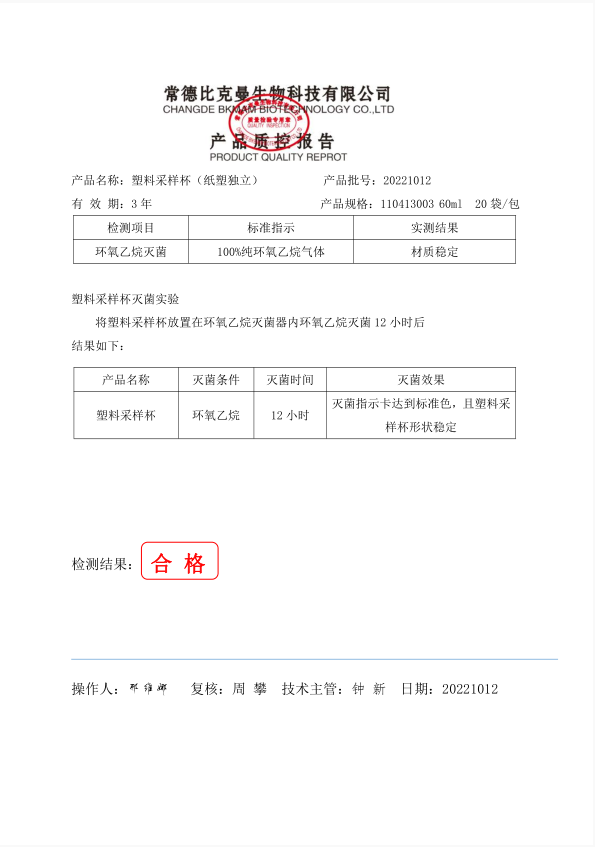110413003 比克曼生物 采樣杯 (紙塑獨(dú)立) 60ml 1個(gè)袋 20袋包 20221012