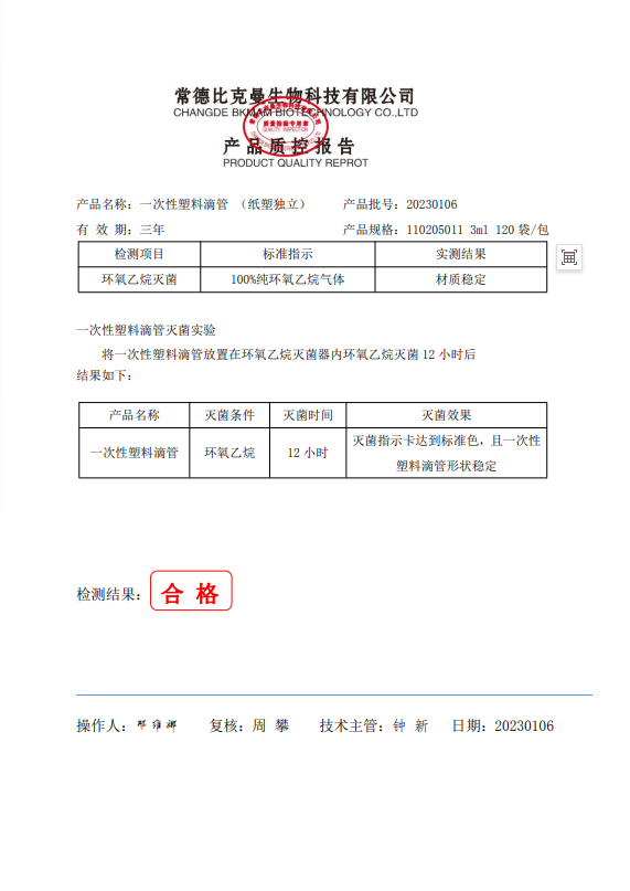 110205011 比克曼生物 紙塑滴管 (紙塑獨(dú)立) 3ml 1支袋 120袋包 20230106