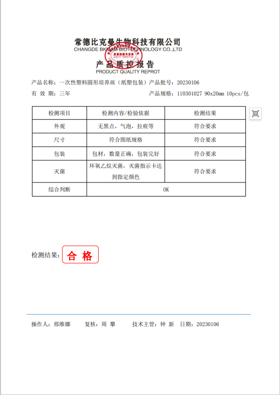 110301027 bkmamlab 一次性塑料圓形培養(yǎng)皿 (紙塑包裝) 90x20mm 10個袋 20230106