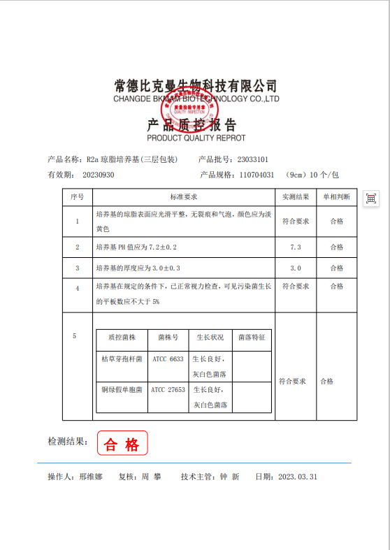110704031 比克曼生物 R2a瓊脂培養(yǎng)基(三層包裝) 9cm 10個(gè)袋 23033101
