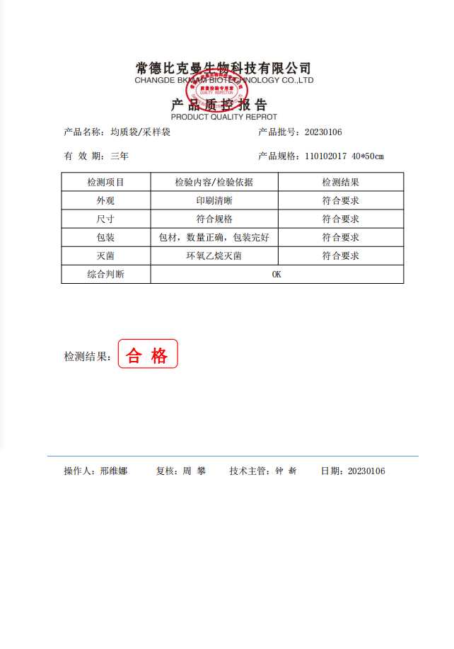 110102017 比克曼生物 無(wú)菌采樣袋 40x50 (帶壓條) 50個(gè)裝 20230106