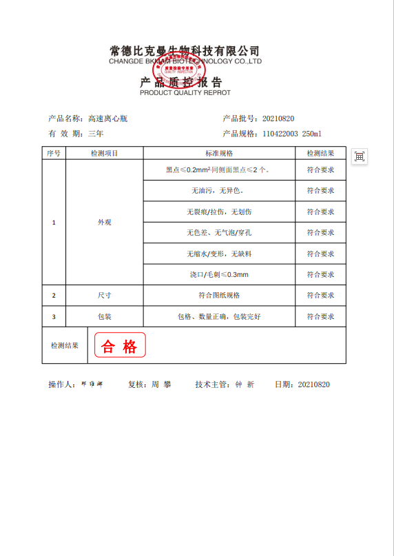 110422003 比克曼生物 高速離心瓶 250ml 6支裝 20210820