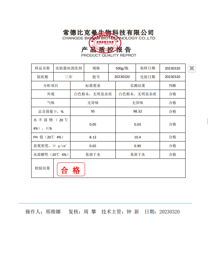 110702045 比克曼生物 實驗器皿清洗劑 500g瓶 20230320