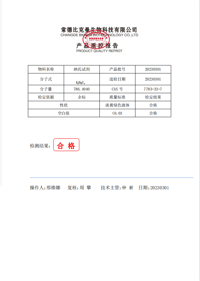 110702071 比克曼生物 納氏試劑 500ml 瓶 20230301