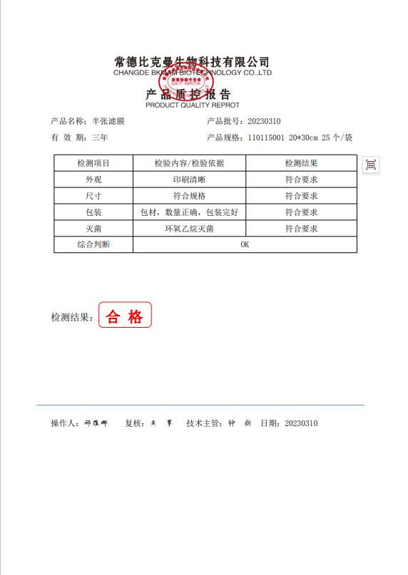 110115001 比克曼生物 半張濾膜 (紙塑包裝) 20x30cm 25個(gè)裝 20230310