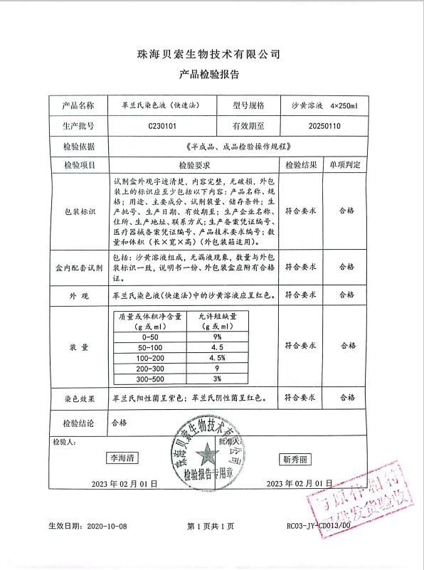 貝索 革蘭氏染色液(快速法) 沙黃溶液 4x250ml BA-4016D C230101
