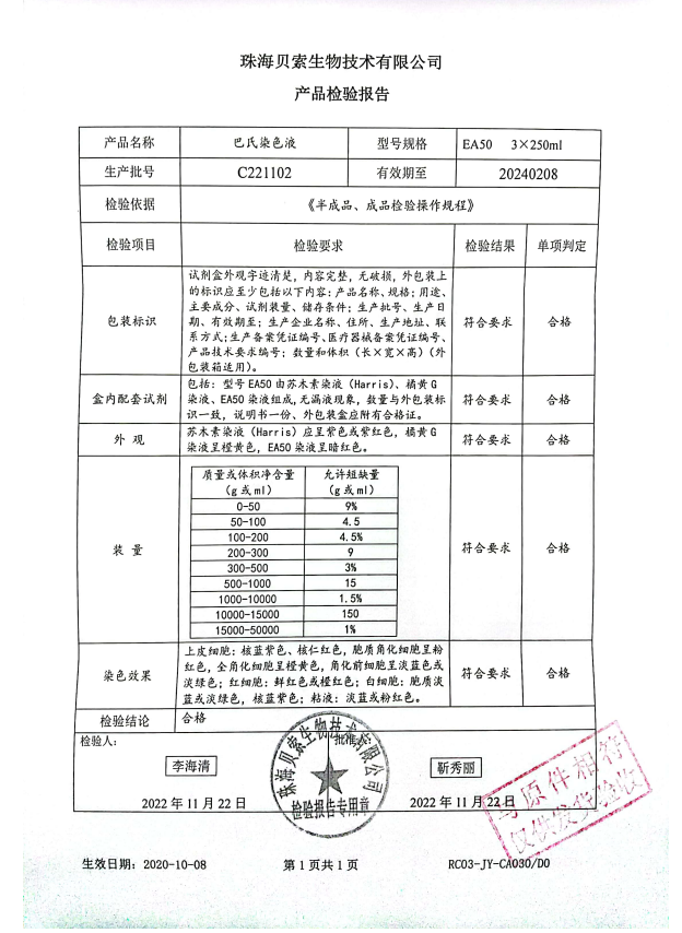 貝索 巴氏染色液 EA-50 3x250ml BA4135A C221102
