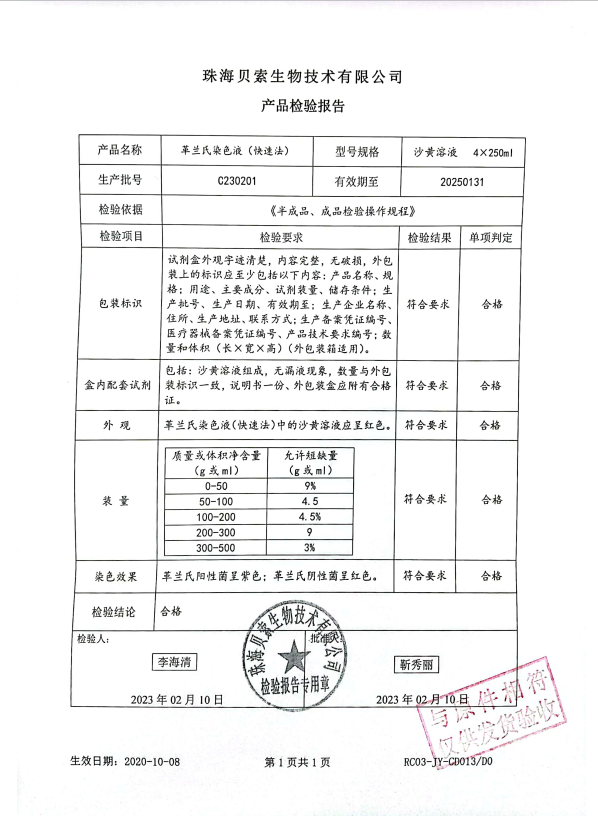 貝索 革蘭氏染色液(快速法) 沙黃溶液 4x250ml BA-4016D C230201