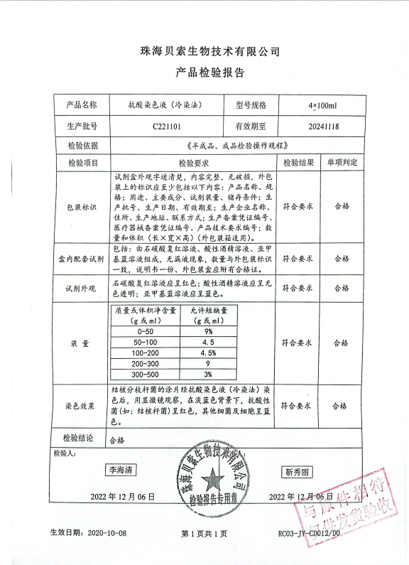 貝索 抗酸染色液(冷染法) 4x100ml C221101