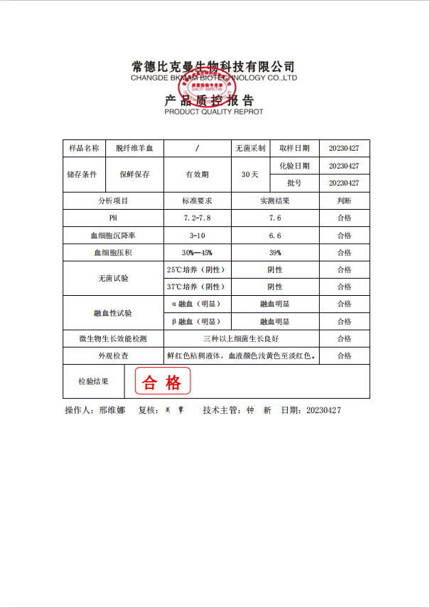 110704020 比克曼生物 脫纖維羊血 100ml瓶 20230427