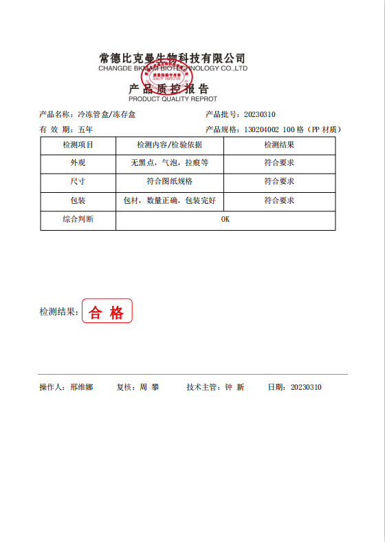 130204002 BKMAM 冷凍管盒 100格 PP材質(zhì) 20230310