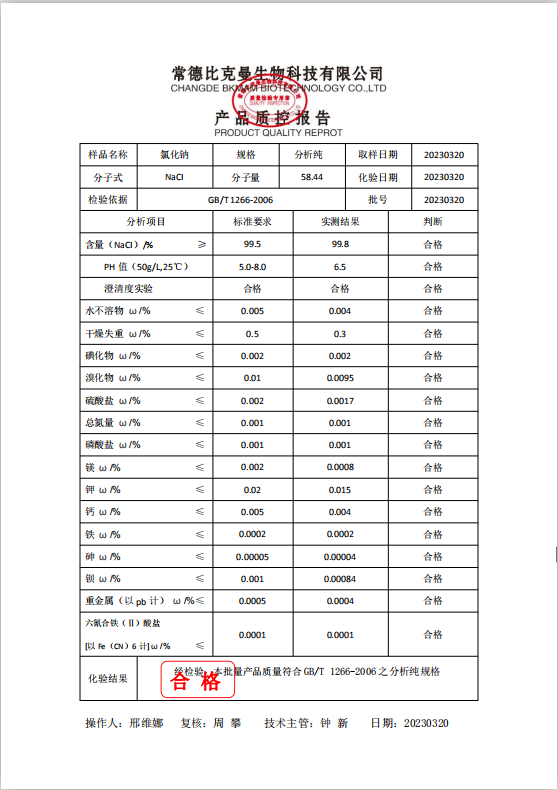 110702034 比克曼生物 氯化鈉 AR 分析純 500g瓶 20230320