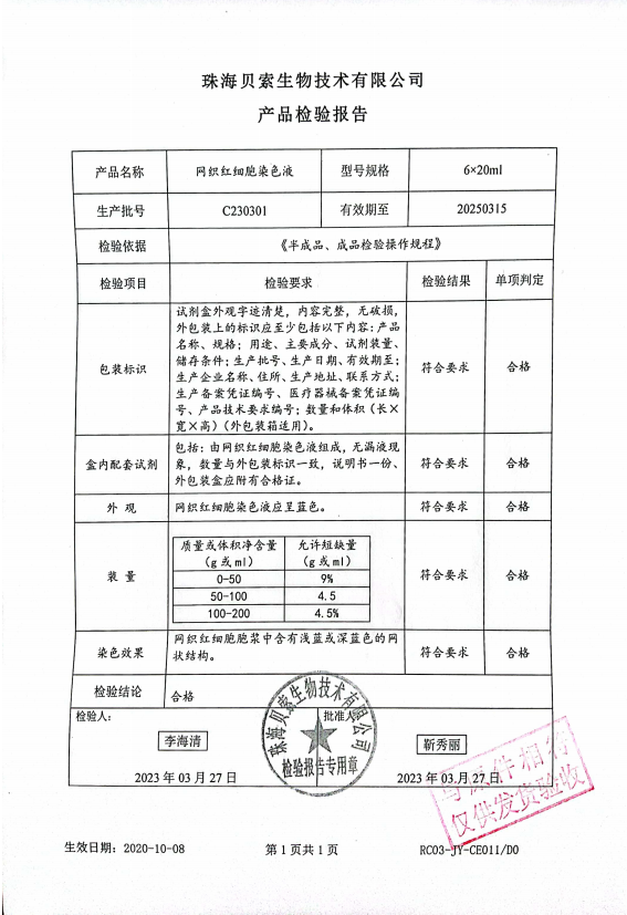 貝索 網(wǎng)織紅細胞染色液 6x20ml BA4004 C230301