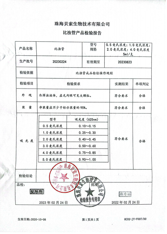 貝索 麥氏比濁管 (0.5濃度5支(5支盒) BC1115A 20230224