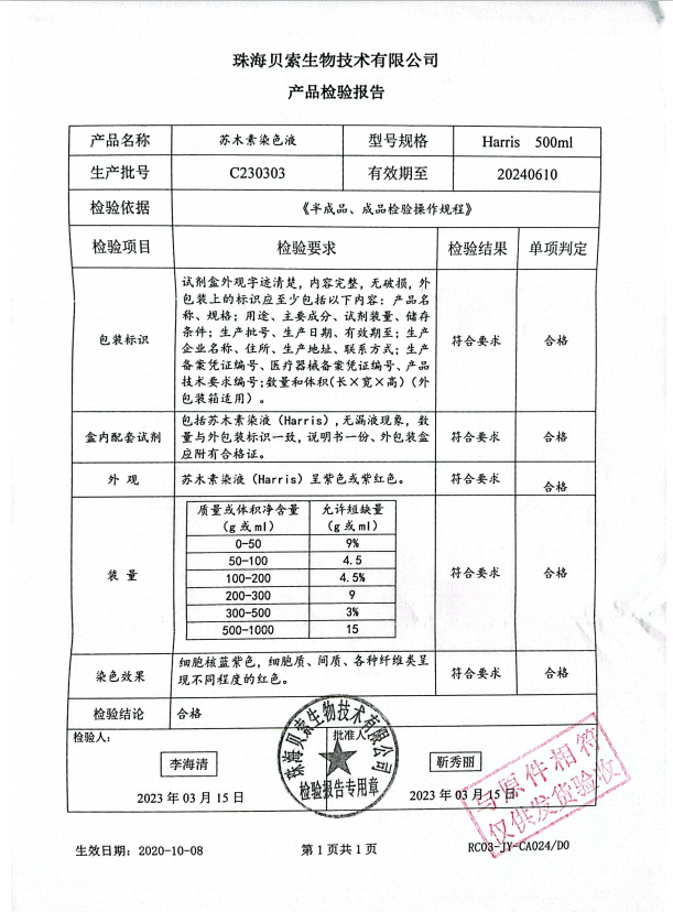 貝索 蘇木素染色液 Harris 500ml BA4097 C230303