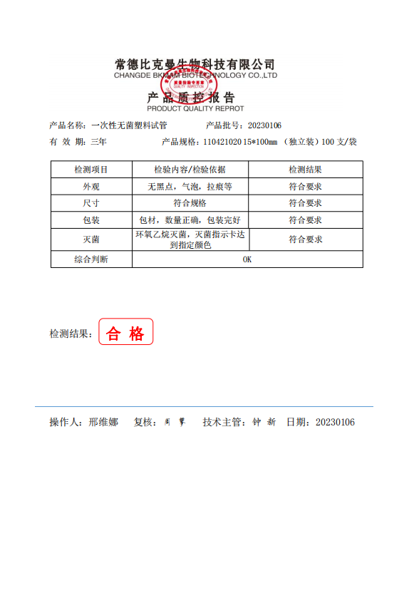 110421020 bkmamlab 一次性無菌塑料試管 15x100mm(獨立裝) 100支袋 20230106