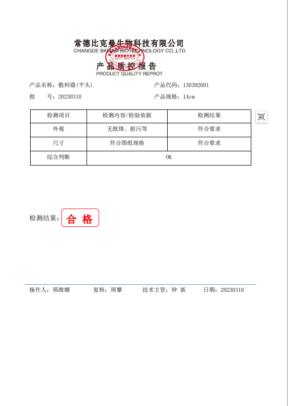130302001 BKMAM 敷料鑷(平頭) 14cm 20230310