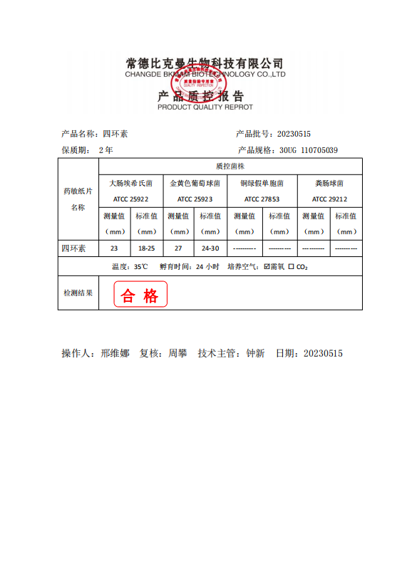 110705039 比克曼生物 四環(huán)素 30UG 20片瓶 20230515