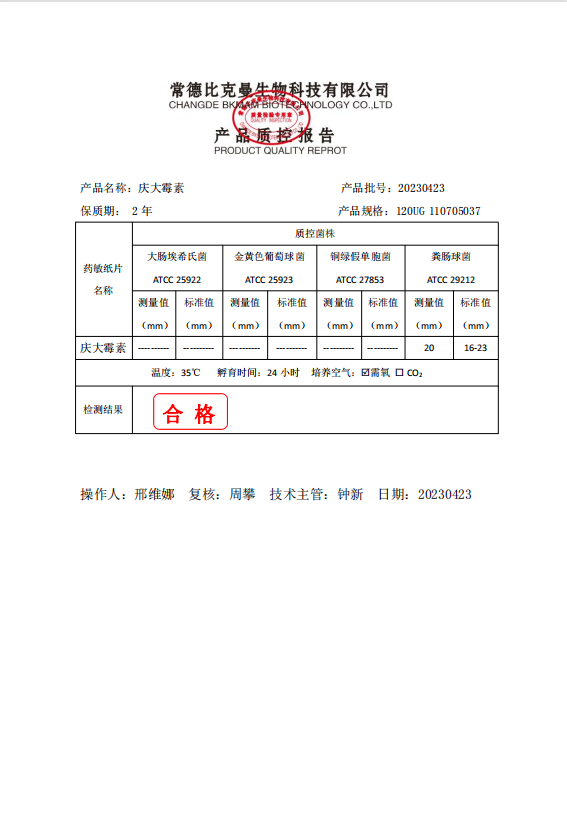 110705037 比克曼生物 慶大霉素 120UG 20片瓶 20230423