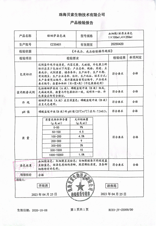貝索 姬姆薩染色液 血細胞 瘧原蟲染色 1x100ml; 4x250ml C230401