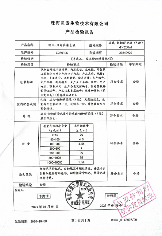 瑞士-姬姆薩染色液 (A液) 4x250ml C230306
