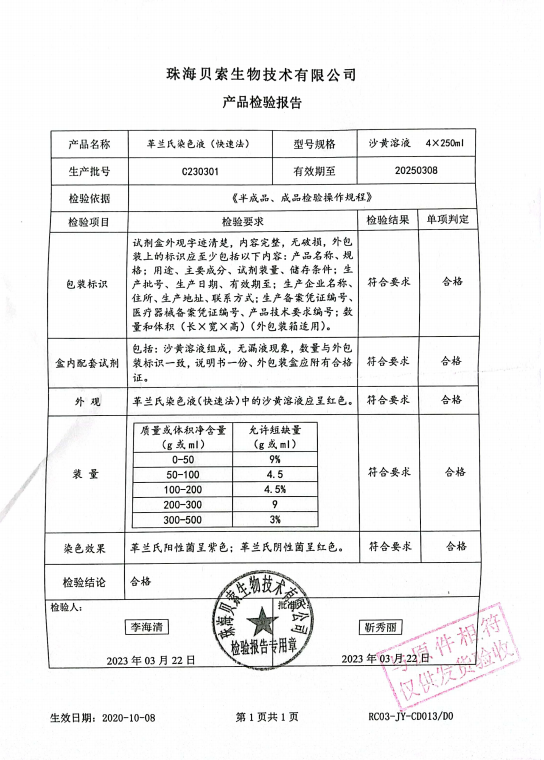 貝索 革蘭氏染色液(快速法) 沙黃溶液 4x250ml BA-4016D C230301