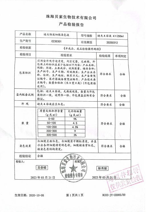 貝索 迪夫快速細(xì)胞染色液 迪夫A 溶液 250mlx4 C230301