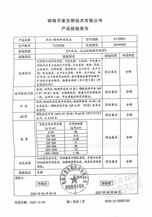 貝索 瑞氏-姬姆薩染色液 250mlx4 C230306