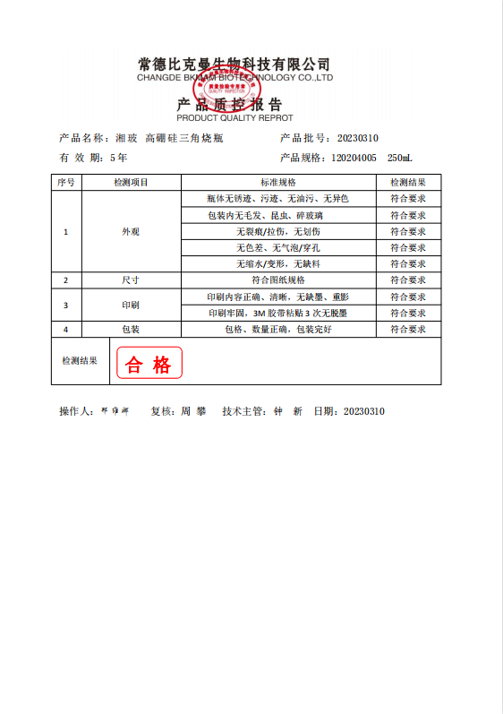 120204005 湘玻 高硼硅三角燒瓶 小口250ml 6個(gè)盒 20230310