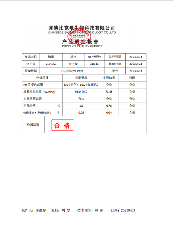 110702012 bkmamlab 酚酞 AR分析純 25g瓶 20230403