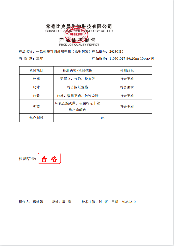 110301027 bkmamlab 一次性塑料圓形培養(yǎng)皿 (紙塑包裝) 90x20mm 10個袋 20230310