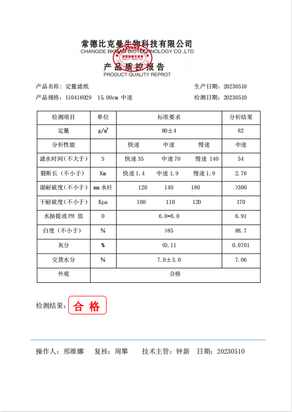 110416029 比克曼生物 定量濾紙 15cm (中速) 100張盒 20230510