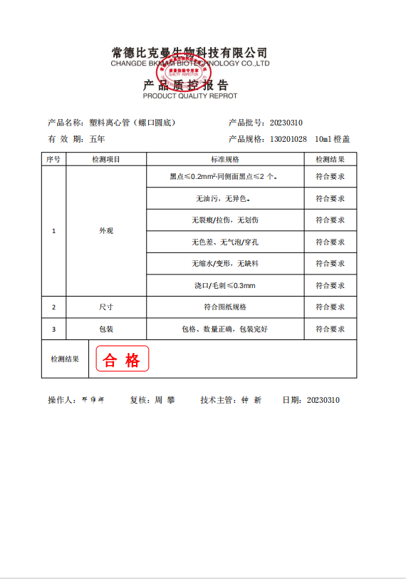 130201028 BKMAM 離心管螺口圓底(橙蓋印刷 ) 10mL 50支袋 20230310