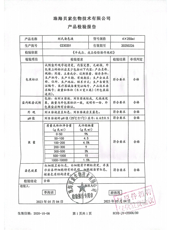 貝索 劉氏染色液 4x250ml BA4000 C230201