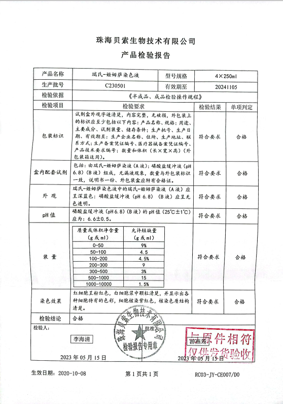 貝索 瑞氏-姬姆薩染色液 250mlx4 C230501