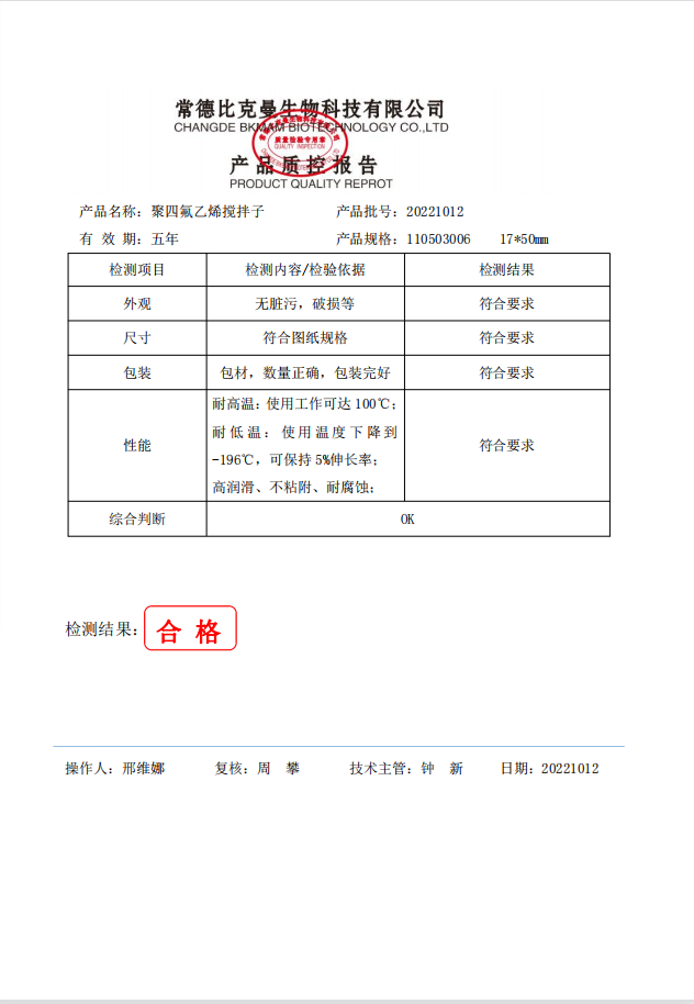 110503006 bkmamlab 聚四氟乙烯攪拌子 A型 17x50mm 20221012
