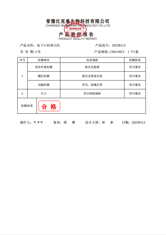 130410015 BKMAM 電子計時器白色 1個盒 20230412