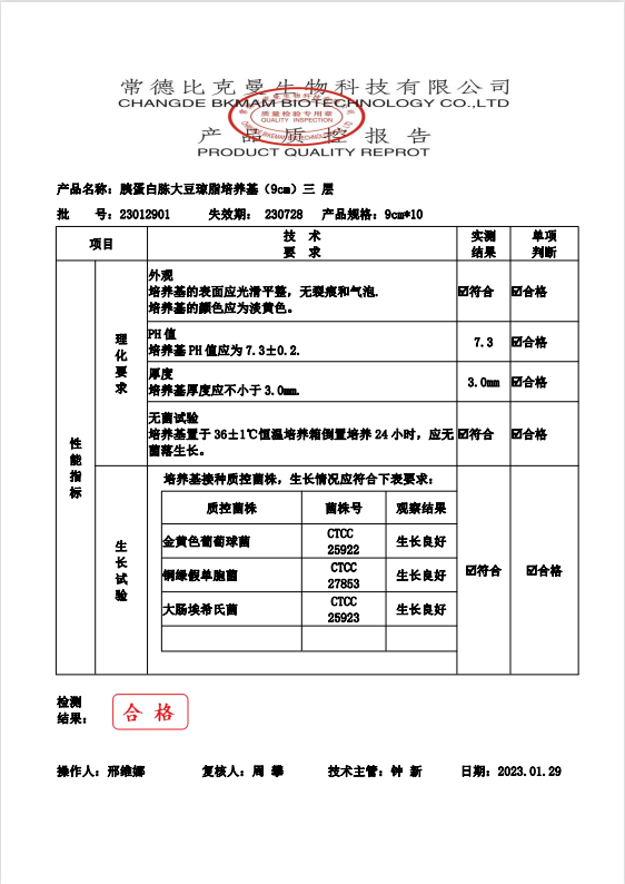 110704032 比克曼生物 胰蛋白胨大豆瓊脂(三層包裝) TSA瓊脂平板 9cm 10個袋 23012901