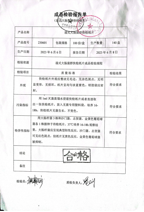 康華 濕式大腸菌群快檢紙片 100份盒 160711012 230601