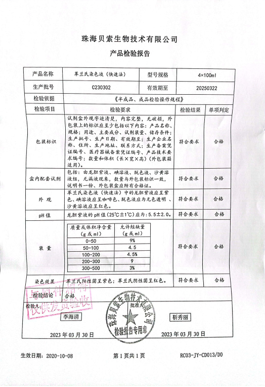 貝索 革蘭氏染色液(快速法) 100ml4盒 C230302