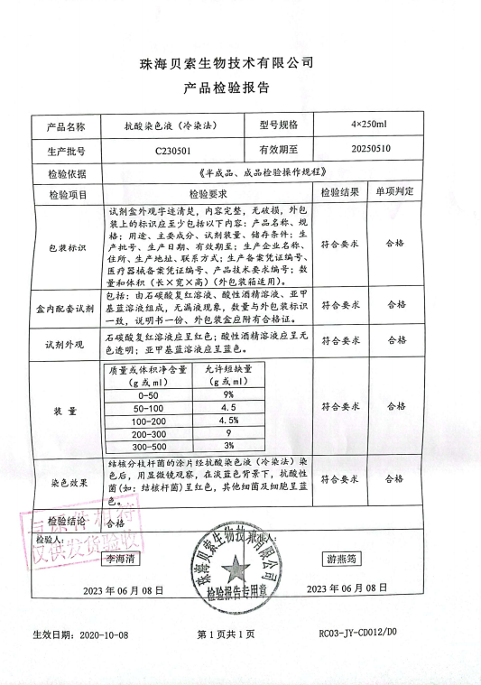 貝索 抗酸染色液(冷染法) 4x250ml C230501