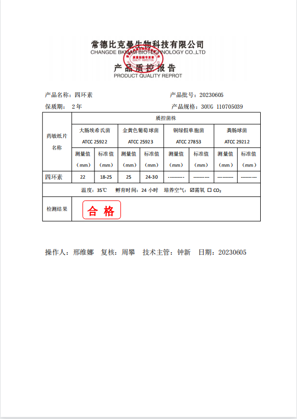 110705039 比克曼生物 四環(huán)素 30UG 20片瓶 20230605