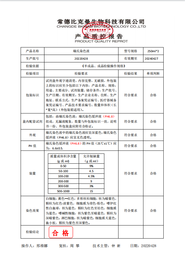 比克曼生物 瑞氏染色液 250mlx2 110703024 20220428
